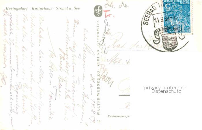72640638 alte Postkarte Heringsdorf Ostseebad Usedom Kulturhaus Strand See postalisch gelaufen Erhaltung siehe scans [KathaD79] KatCode: 11110013059112