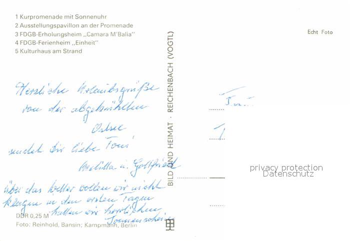 72700901 Heringsdorf Ostseebad Usedom Kurpromenade Erholungsheime Camara M`Balia Einheit Kulturhaus postalisch nicht gelaufen Erhaltung siehe scans [LiesaD40] KatCode: 11110013059112