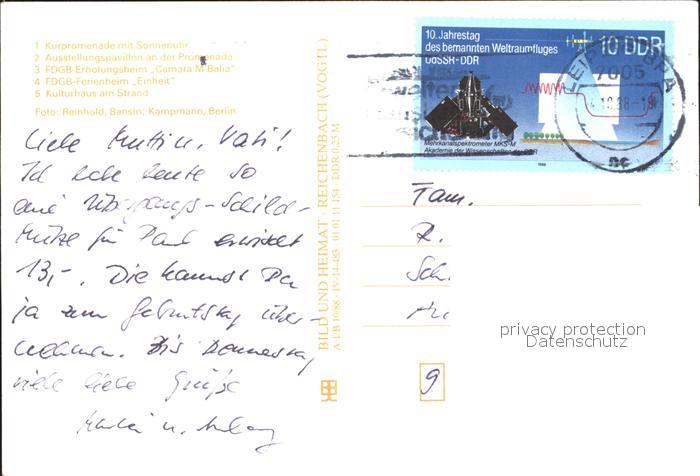 72332166 alte Postkarte Heringsdorf Ostseebad Usedom Kurpromenade Sonnenuhr Pavillon FDGB Erholungsheim Ferienheim Kulturhaus postalisch gelaufen Erhaltung siehe scans KatCode: 11110013059112