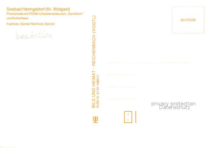 73065943 Heringsdorf Ostseebad Usedom Promenade mit FDGB Urlauberrestaurant Sanddorn Kulturhaus postalisch nicht gelaufen Erhaltung siehe scans [FriedD77] KatCode: 11110013059112
