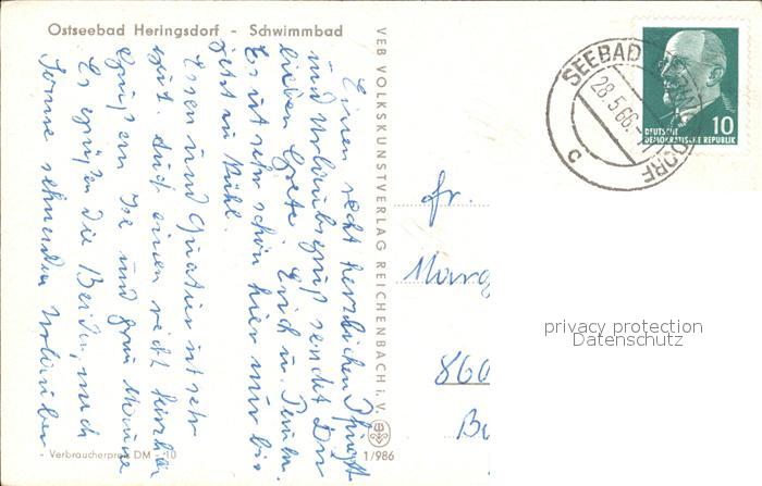 72167390 alte Postkarte Heringsdorf Ostseebad Usedom Schwimmbad postalisch gelaufen Erhaltung siehe scans KatCode: 11110013059112