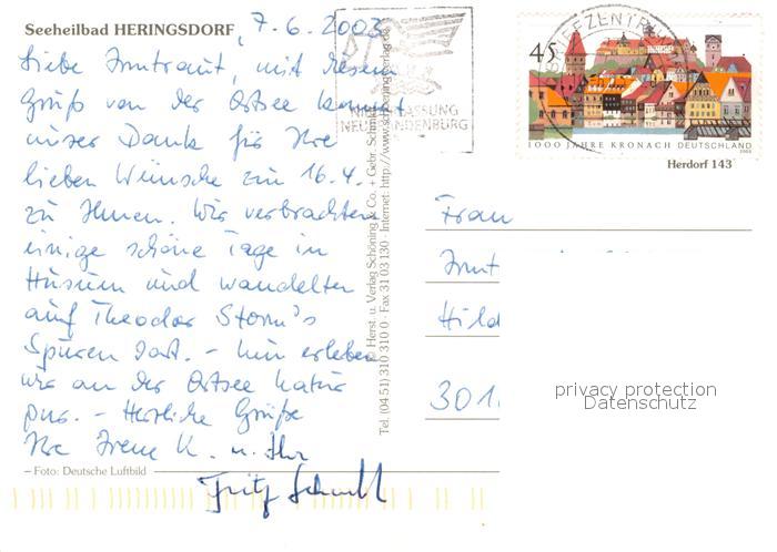 73163221 alte Postkarte Heringsdorf Ostseebad Usedom Seeheilbad Fliegeraufnahme postalisch gelaufen Erhaltung siehe scans [FriedD77] KatCode: 11110013059112