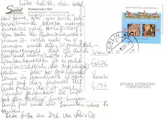 72843971 alte Postkarte Heringsdorf Ostseebad Usedom Seehotel Pommerscher Hof postalisch gelaufen Erhaltung siehe scans [AndreD76] KatCode: 11110013059112