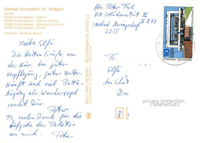 72972826 alte Postkarte Heringsdorf Ostseebad Usedom Strand FDGB Erholungsheime postalisch gelaufen Erhaltung siehe scans [FriedD77] KatCode: 11110013059112