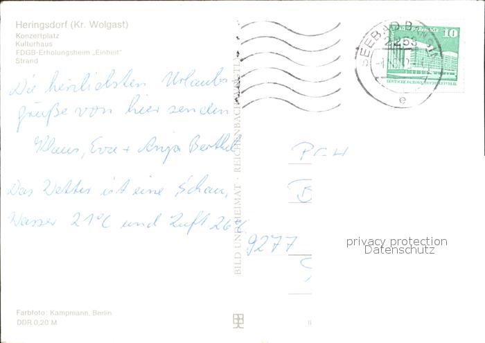 72257261 alte Postkarte Heringsdorf Ostseebad Usedom Strand Kulturhaus postalisch gelaufen Erhaltung siehe scans KatCode: 11110013059112