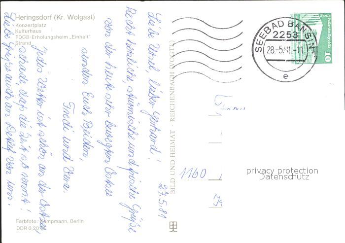 72276933 alte Postkarte Heringsdorf Ostseebad Usedom Strand Kulturhaus Konzertmuschel postalisch gelaufen Erhaltung siehe scans KatCode: 11110013059112