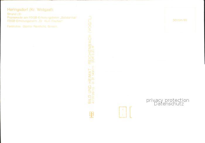 72227201 Heringsdorf Ostseebad Usedom Strand Promenade FDGB Erholungsheime Solidaritaet und Kurt Fischer postalisch nicht gelaufen Erhaltung siehe scans KatCode: 11110013059112