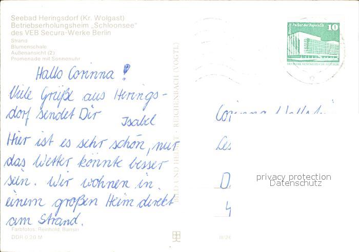72061745 alte Postkarte Heringsdorf Ostseebad Usedom Strand Promenade Sonnenuhr postalisch gelaufen Erhaltung siehe scans KatCode: 11110013059112