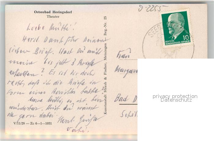 43499963 alte Postkarte Heringsdorf Ostseebad Usedom Theater postalisch gelaufen Erhaltung siehe scans [LiesaD40] KatCode: 11110013059112