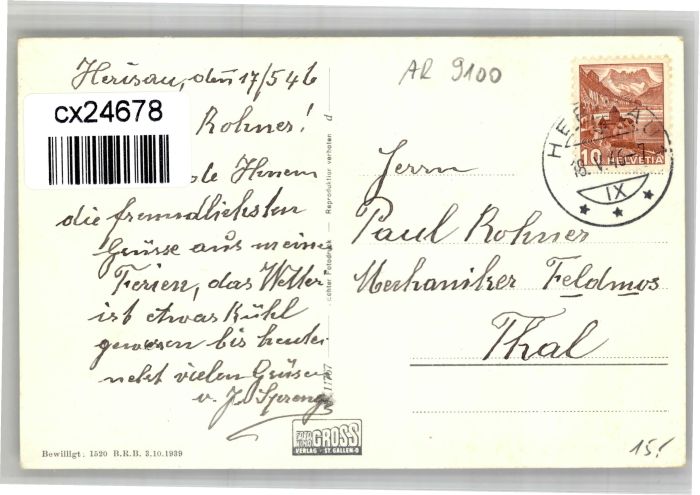 10752910 alte Postkarte Herisau postalisch gelaufen KatCode: 11470020060528