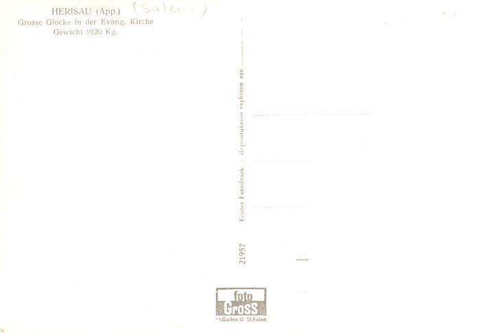 13909315 Herisau AR Grosse Glocke in der Ev Kirche postalisch nicht gelaufen Erhaltung siehe scans [WerneD78] KatCode: 11470020060528