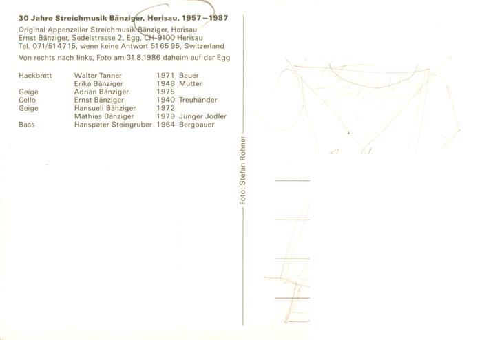13926234 Herisau AR Streichmusik Baenziger postalisch nicht gelaufen Erhaltung siehe scans [FriedD77] KatCode: 11470020060528
