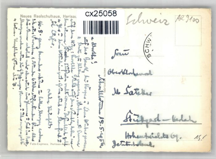 10753290 alte Postkarte Herisau Schule postalisch gelaufen KatCode: 11470020060528