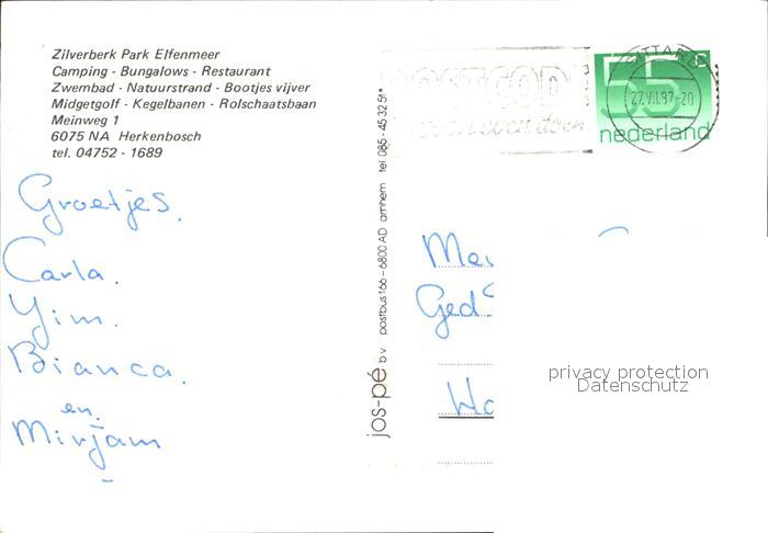 old postcard Herkenbosch Zilverberkpark Elfenmeer postalisch gelaufen Erhaltung siehe scans