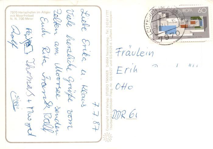 73945903 alte Postkarte Herlazhofen Leutkirch Allgaeu BW Panorama mit Moorfreibad postalisch gelaufen Fliegeraufnahme Erhaltung siehe scans [FriedD77] KatCode: 11110008436055