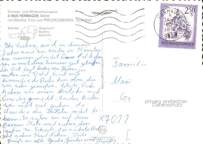 72499788 alte Postkarte Hermagor Kaernten Fliegeraufnahme postalisch gelaufen Erhaltung siehe scans KatCode: 11390212020305