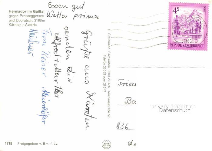 72679987 alte Postkarte Hermagor Kaernten Fliegeraufnahme im Gailtal gegen Presseggersee postalisch gelaufen Erhaltung siehe scans [LiesaD40] KatCode: 11390212020305