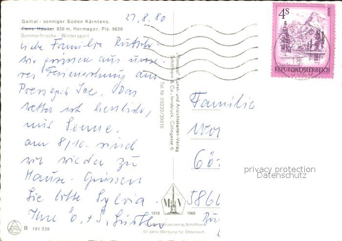 72446516 alte Postkarte Hermagor Kaernten Gailtal postalisch gelaufen Erhaltung siehe scans KatCode: 11390212020305