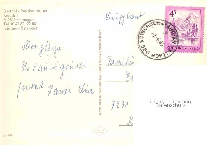 12852323 alte Postkarte Hermagor Kaernten Gasthof Pension Hauser postalisch gelaufen Erhaltung siehe scans [KathaD81] KatCode: 11390212020305