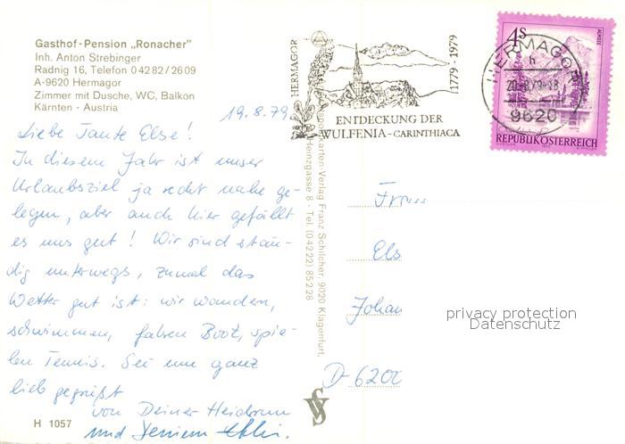 73125238 alte Postkarte Hermagor Kaernten Gasthof Ronacher postalisch gelaufen Erhaltung siehe scans [NatalD47] KatCode: 11390212020305