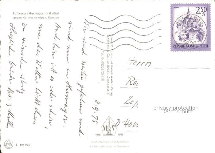 72446549 alte Postkarte Hermagor Kaernten Karnische Alpen postalisch gelaufen Erhaltung siehe scans KatCode: 11390212020305