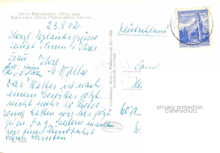 72702342 alte Postkarte Hermagor Kaernten Untere Valentinalpe Kellerwand Ploeckengebiet postalisch gelaufen Erhaltung siehe scans [FriedD77] KatCode: 11390212020305