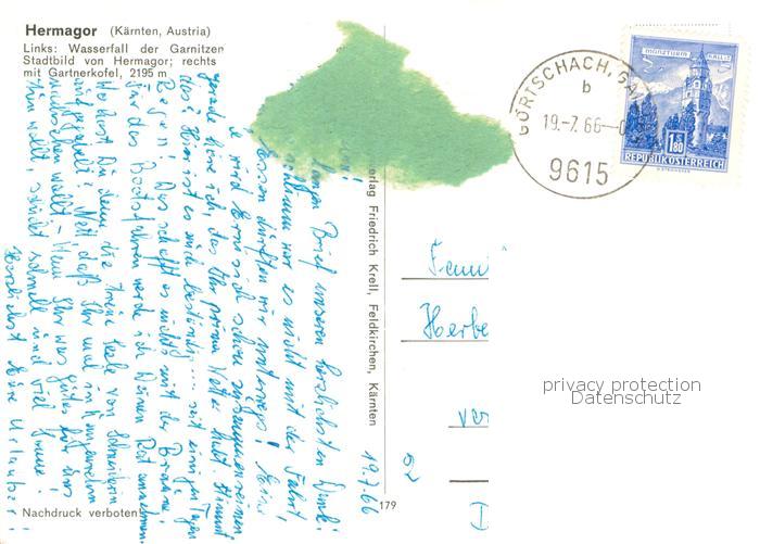 73779660 alte Postkarte Hermagor Kaernten Wasserfall der Garnitzen Panorama Gartnerkofel Seepartie postalisch gelaufen Erhaltung siehe scans [WerneD78] KatCode: 11390212020305