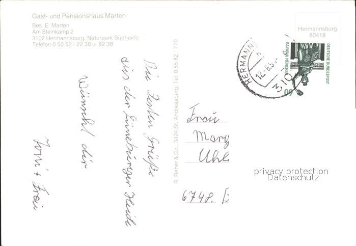 72101076 alte Postkarte Hermannsburg Fliegeraufnahme Gaestehaus Marten postalisch gelaufen Erhaltung siehe scans KatCode: 11110003351013