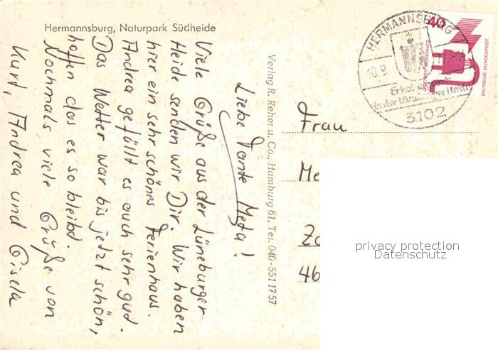 72865535 alte Postkarte Hermannsburg Oertzetal mit St Peter und Paul Kirche Waldschwimmbad Museum postalisch gelaufen Erhaltung siehe scans [WerneD78] KatCode: 11110003351013