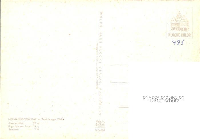 72113233 Hermannsdenkmal postalisch nicht gelaufen Erhaltung siehe scans KatCode: 11110005766020