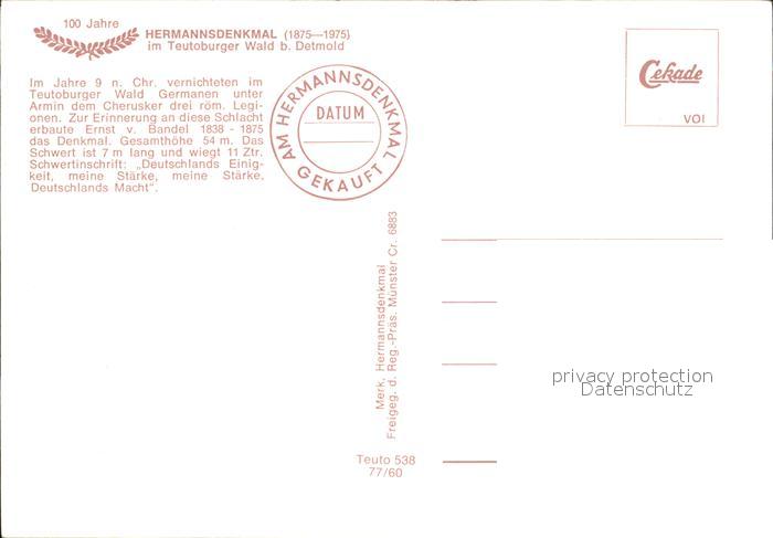 72049440 Hermannsdenkmal postalisch nicht gelaufen Erhaltung siehe scans KatCode: 11110005766020
