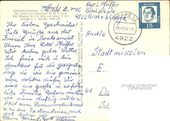 71847536 alte Postkarte Hermannsdenkmal postalisch gelaufen Erhaltung siehe scans KatCode: 11110005766020
