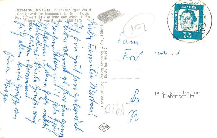 73142680 alte Postkarte Hermannsdenkmal postalisch gelaufen Erhaltung siehe scans [NatalD47] KatCode: 11110005766020