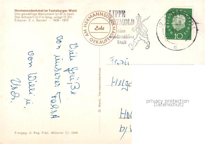 73107282 alte Postkarte Hermannsdenkmal postalisch gelaufen Erhaltung siehe scans [NatalD47] KatCode: 11110005766020