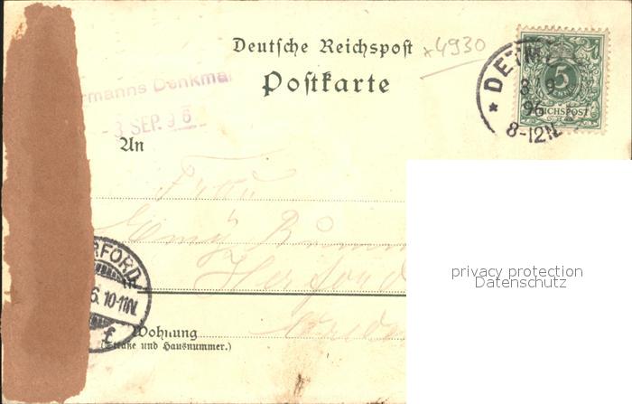 41987525 alte Postkarte Hermannsdenkmal Bismarckstein Gasthaus Hotel Teutoburger Wald Deutsche Reichspost postalisch gelaufen Erhaltung siehe scans KatCode: 11110005766020