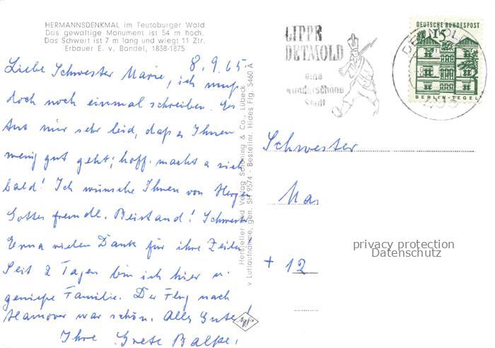74099872 alte Postkarte Hermannsdenkmal Detmold Lippe NRW Fliegeraufnahme postalisch gelaufen Erhaltung siehe scans [WerneD78] KatCode: 11110005766020