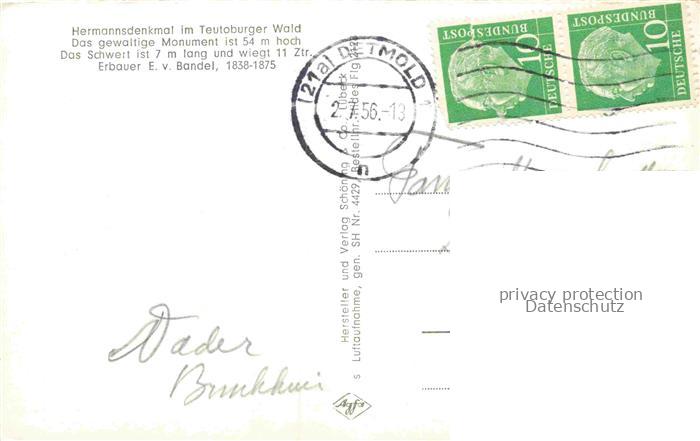 34144926 alte Postkarte Hermannsdenkmal Detmold Lippe NRW Fliegeraufnahme postalisch gelaufen Erhaltung siehe scans [WerneD78] KatCode: 11110005766020