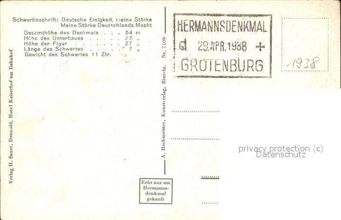 71525502 alte Postkarte Hermannsdenkmal Externsteine postalisch gelaufen Erhaltung siehe scans KatCode: 11110005766020