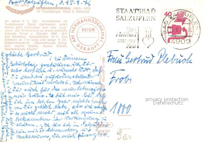 73110306 alte Postkarte Hermannsdenkmal Fliegeraufnahme postalisch gelaufen Erhaltung siehe scans [NatalD47] KatCode: 11110005766020