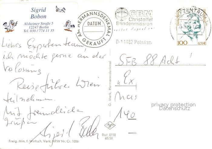 73298335 alte Postkarte Hermannsdenkmal Fliegeraufnahme postalisch gelaufen Erhaltung siehe scans [PaolaD17] KatCode: 11110005766020