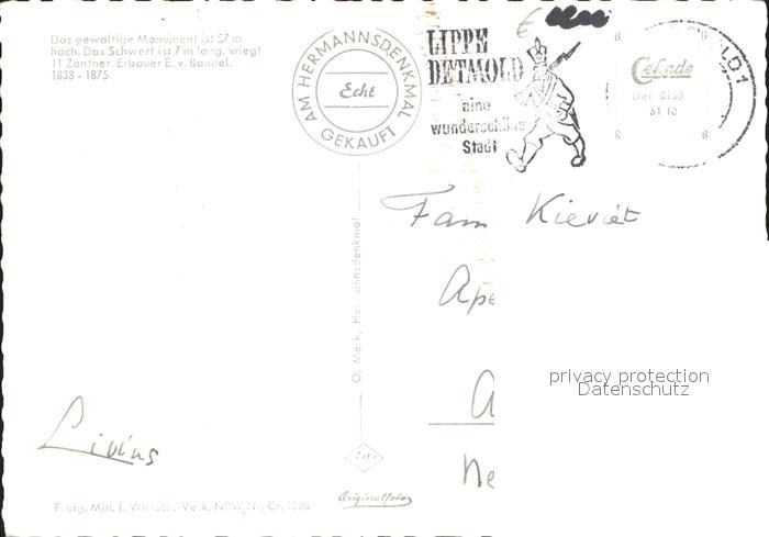 72174970 alte Postkarte Hermannsdenkmal Fliegeraufnahme postalisch gelaufen Erhaltung siehe scans KatCode: 11110005766020