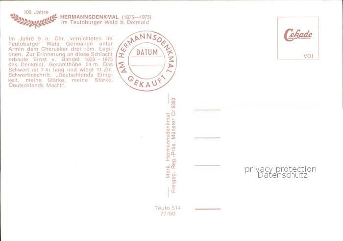 72049441 Hermannsdenkmal Fliegeraufnahme postalisch nicht gelaufen Erhaltung siehe scans KatCode: 11110005766020