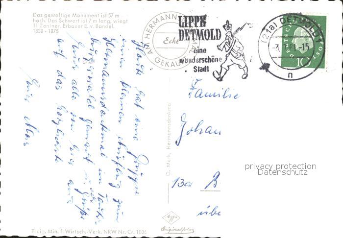 71967873 alte Postkarte Hermannsdenkmal Fliegeraufnahme postalisch gelaufen Erhaltung siehe scans KatCode: 11110005766020