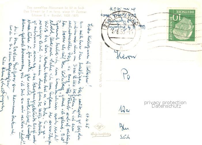 73294930 alte Postkarte Hermannsdenkmal Fliegeraufnahme postalisch gelaufen Erhaltung siehe scans [PaolaD17] KatCode: 11110005766020