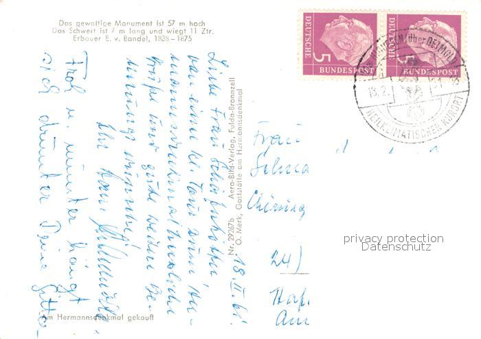 73293863 alte Postkarte Hermannsdenkmal Fliegeraufnahme Detmold postalisch gelaufen Erhaltung siehe scans [LiesaD40] KatCode: 11110005766020