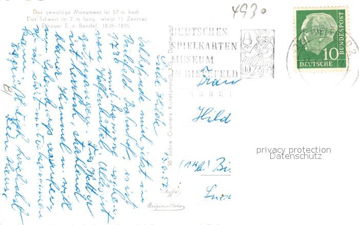 73278154 alte Postkarte Hermannsdenkmal Fliegeraufnahme im Teutoburger Wald postalisch gelaufen Erhaltung siehe scans [LiesaD40] KatCode: 11110005766020