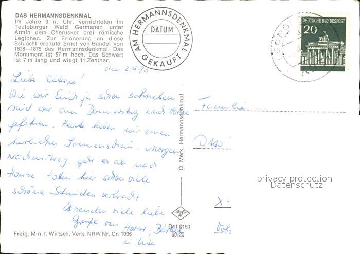 72535362 alte Postkarte Hermannsdenkmal Fliegeraufnahme im Teutoburger Wald postalisch gelaufen Erhaltung siehe scans [LiesaD40 kt120box] KatCode: 11110005766020