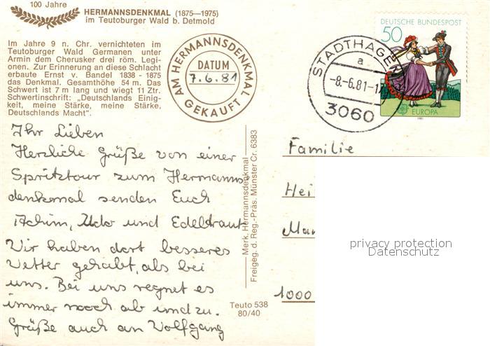 73606755 alte Postkarte Hermannsdenkmal Fliegeraufnahme im Teutoburger Wald bei Detmold postalisch gelaufen Erhaltung siehe scans [LiesaD40] KatCode: 11110005766020