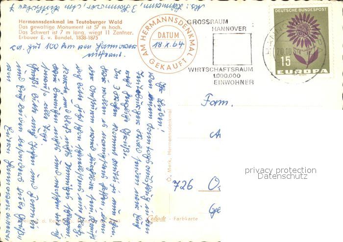 71847598 alte Postkarte Hermannsdenkmal Fliegeraufnahme im Teutoburger wals postalisch gelaufen Erhaltung siehe scans KatCode: 11110005766020