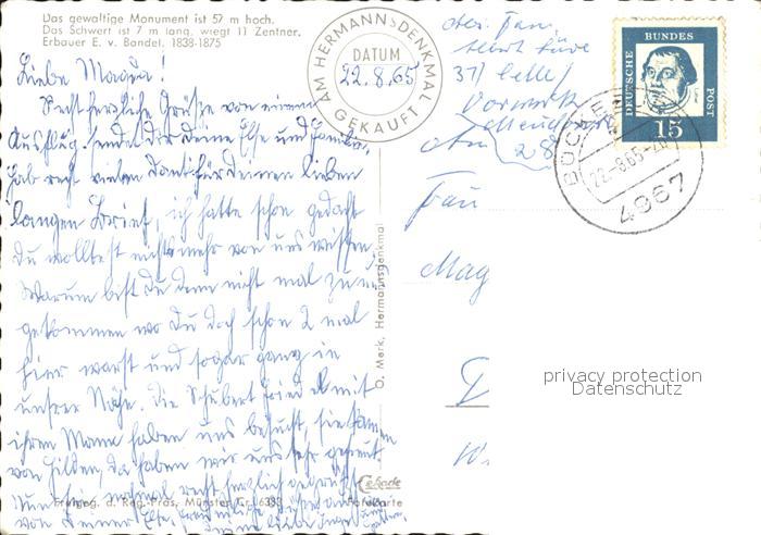 72406052 alte Postkarte Hermannsdenkmal Fliegeraufnahme Teutoburger Wald postalisch gelaufen Erhaltung siehe scans KatCode: 11110005766020